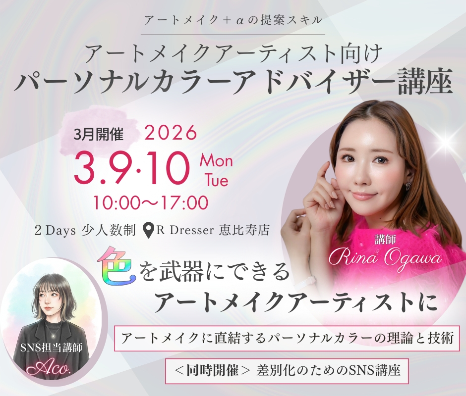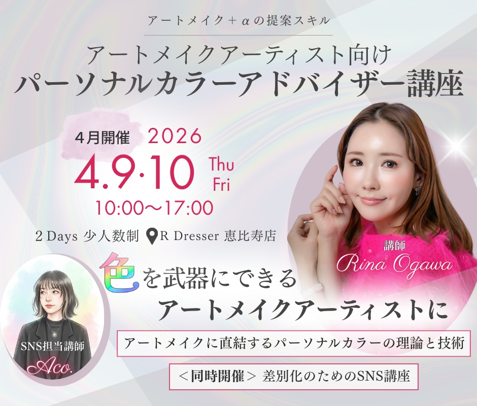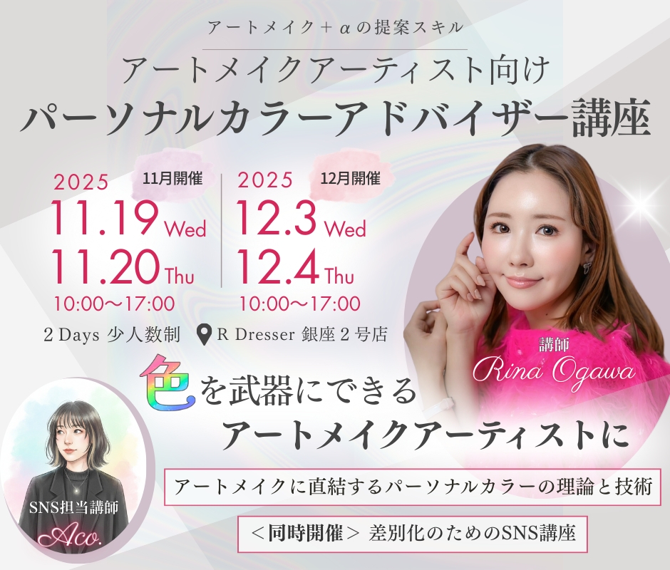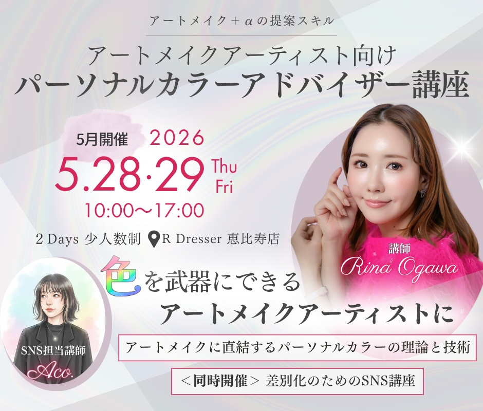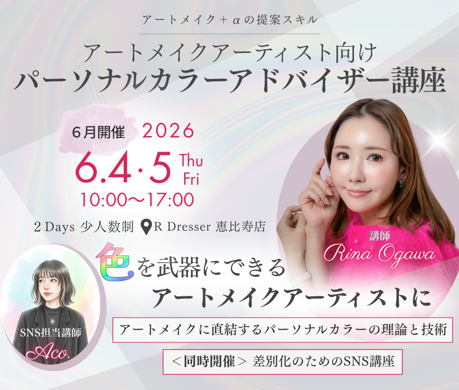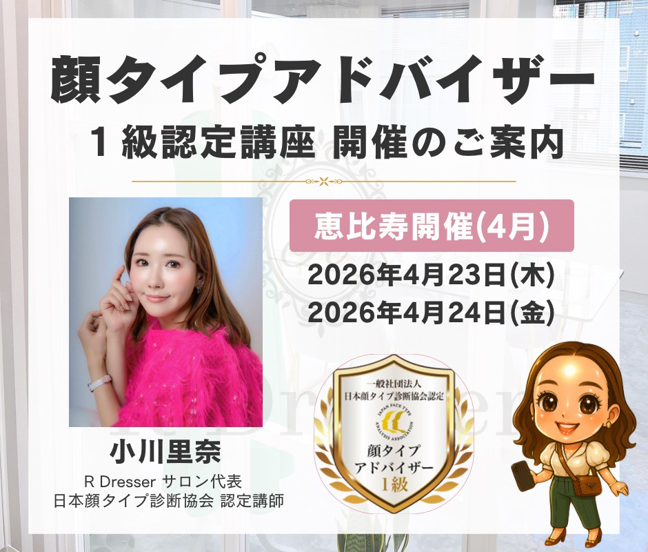 R Dresserの代表「小川 里奈」は現在も多くの「パーソナルカラーアナリスト」「顔タイプアドバイザー」を育成する現役のパーソナルカラー講師。